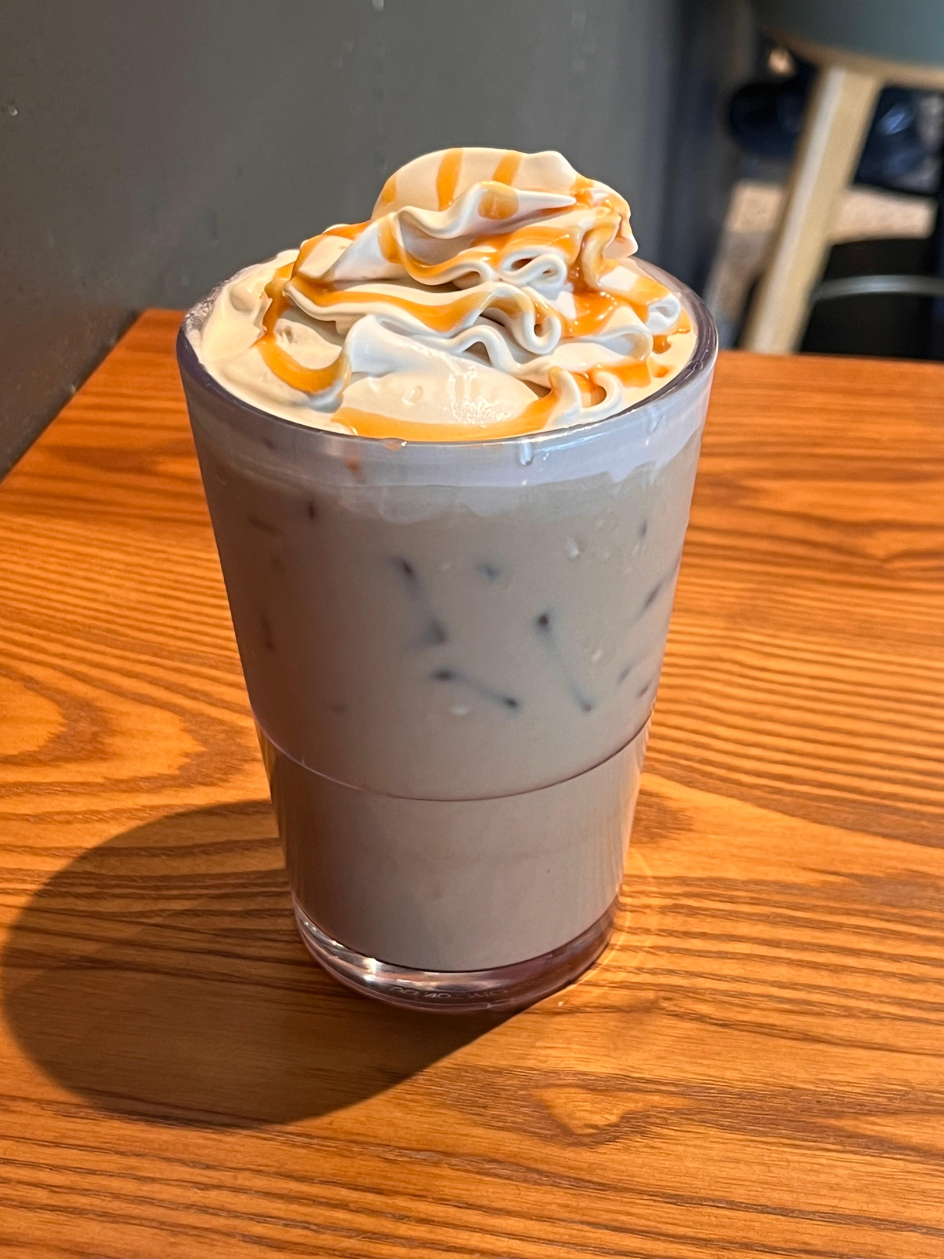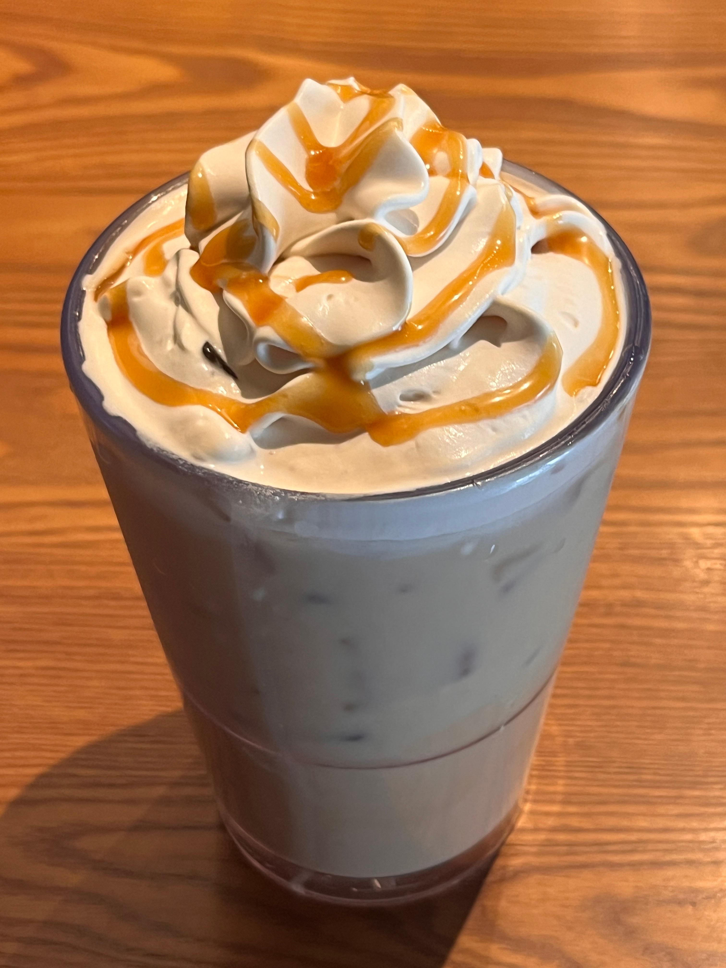 휘핑크림 위에 카라멜 드리즐까지 있어서 많이 달아요